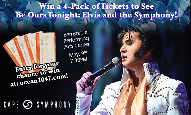 Ocean 104.7 is pleased to partner with the Cape Symphony to give YOU the chance to win a 4-pack of tickets to see Be Ours Tonight: Elvis and the Symphony at the Barnstable Performing Arts Center on Saturday, May, 9th at 7:30PM. For your chance to win, enter below!